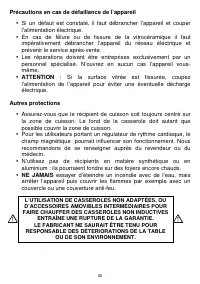 36 Chère cliente, cher client, Nous vous remercions de la confiance que vous nous avez accordée en choisissant notre table de cuisson vitrocéramique à induction. Afin de bien connaître cet appareil, nous vous recommandons de lire attentivement cette notice d’utilisation dans son intégralité et de la...