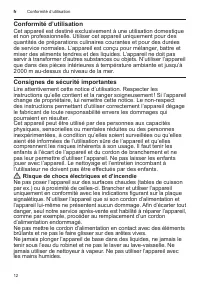 12 fr Conformité d’utilisation Conformité d’utilisation Cet appareil est destiné exclusivement à une utilisation domestique et non professionnelle. Utiliser cet appareil uniquement pour des quantités de préparations culinaires courantes et pour des durées de service normales. L’appareil est conçu po...