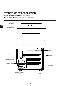 34 FR STRUCTURE ET DESCRIPTION SERIE INCASTREMENT EN COLONNE (Encastrement dans un meuble de la cuisine) Panneau de cont. à touche unique et afficheur digital Condensateur Porte Poignée Garniture Etagère profonde Etagère étroite Patte de fixation pour les éléments Pied Fig. 1